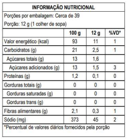 INGREDIENTES: Ketchup Rústico (água, tomate, açúcar cristal, vinagre, especiarias, açúcar mascavo, fibra de tapioca, acidulante ácido cítrico, espessante goma xantana e conservador sorbato de potássio) e Aromatizante aroma de fumaça. CONTÉM GLÚTEN. ALÉRGICOS: PODE CONTER SOJA, CENTEIO, CEVADA, TRIGO, AVEIA, LEITE E OVO.